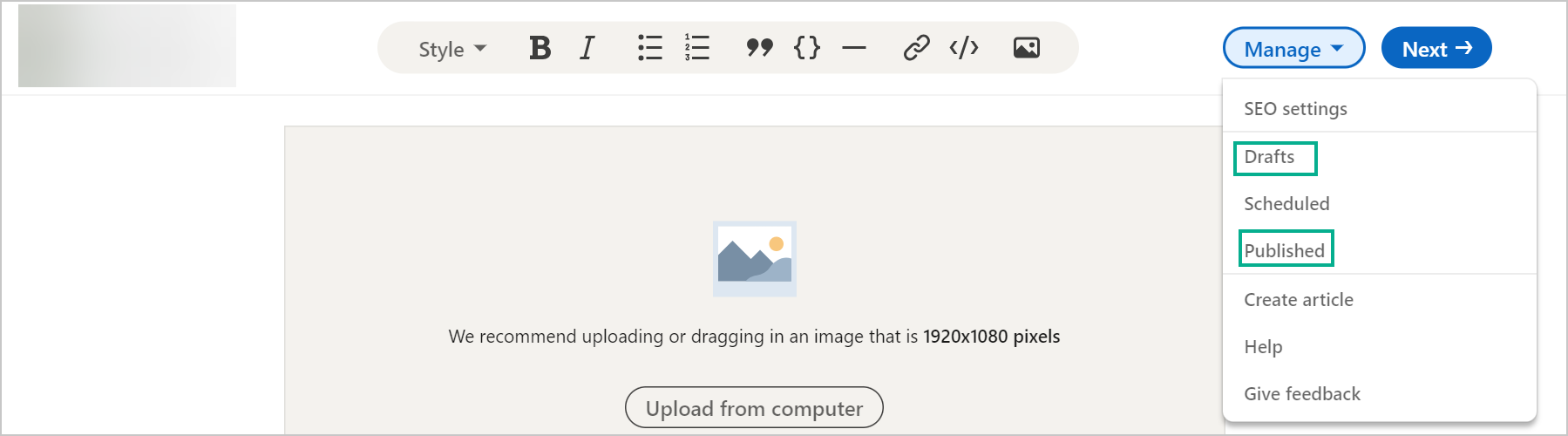 二、如何管理草稿与已发布文章?